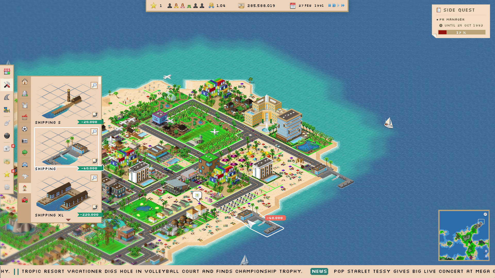 Summer Islands – In this diversified economic simulation you have the possibility to build an indescribable holiday paradise.Build cottages, villas or expensive hotels, right on the beach or in the mountains. When a building has been completed, the tourists can come by boat or plane.