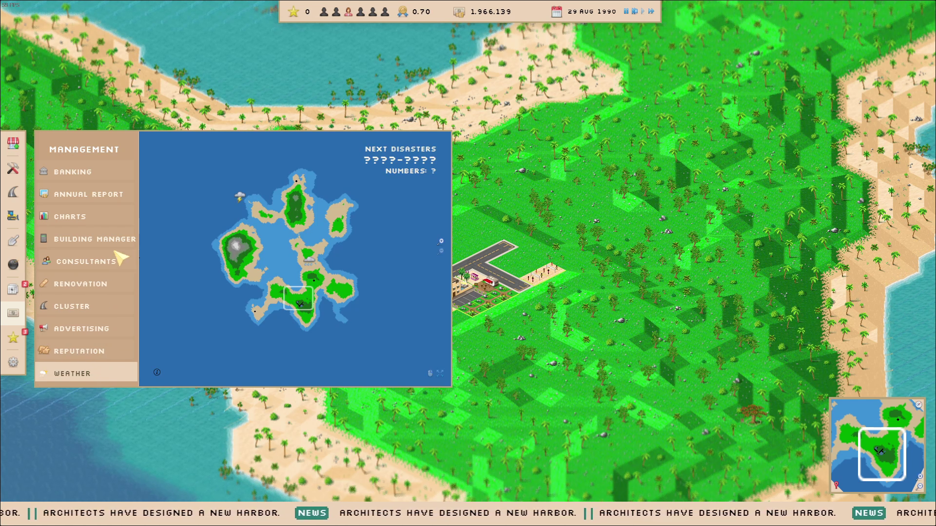 Then the difficulty begins: build bars, discos, golf courses, supermarkets and many other buildings, which are popular by the tourists and let you as the owner become rich. But do not forget their surroundings. The many catastrophes that can occur and your enemies who also want to depend on the cake. You should always keep an eye on your vacation paradise.